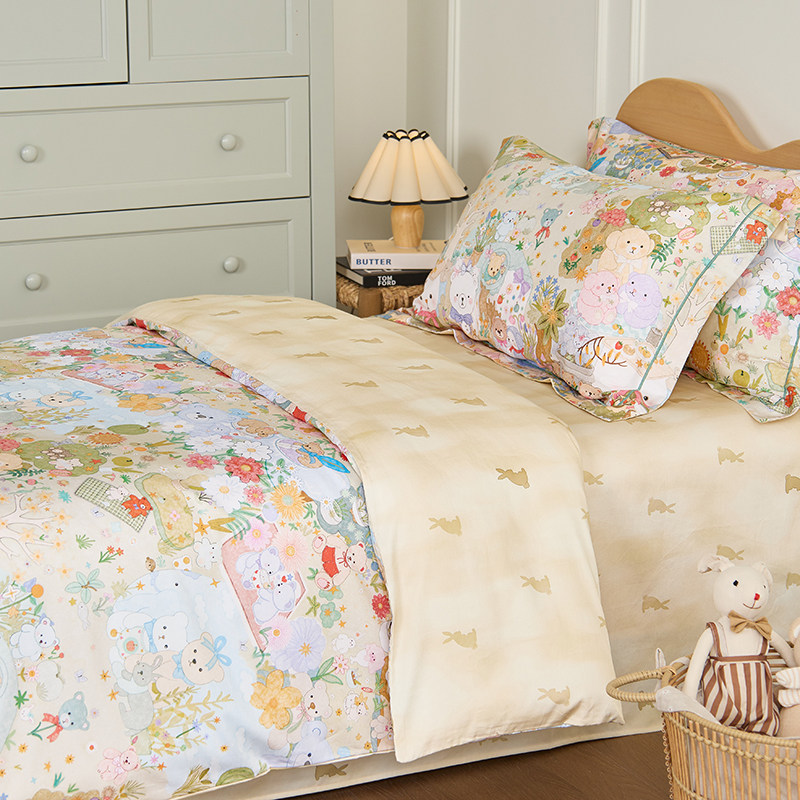 60支儿童长绒棉三件套1.2单人床宿舍全棉纯棉数码床单被套四件套