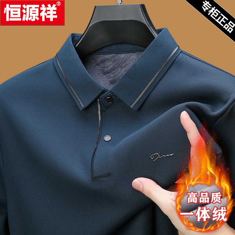 恒源祥中年男士秋冬加绒加厚长袖t恤翻领百搭一体绒POLO衫打底衫