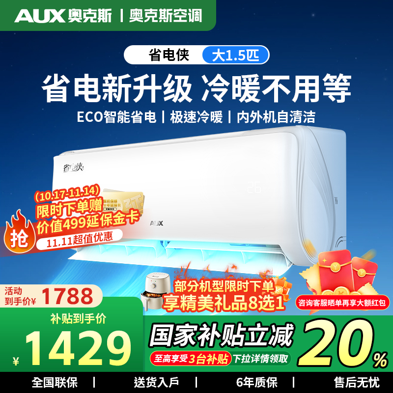 奥克斯空调大1.5/1匹新一级省电侠壁式挂机变频冷暖家用旗舰店
