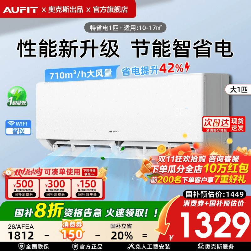 立减20%】AUFIT空调奥克斯出品大1.5匹一级能效挂机变频1匹家用