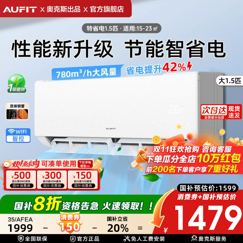 【官方自营】AUFIT空调奥克斯出品大1.5匹新一级能效变频挂机省电