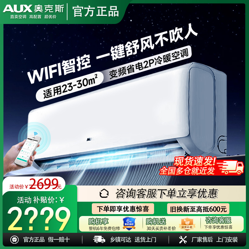 奥克斯空调2匹p新一级变频大挂机冷暖挂式家用卧室客厅两用官旗店