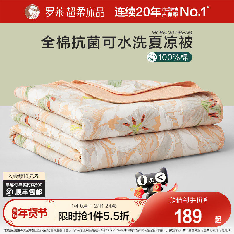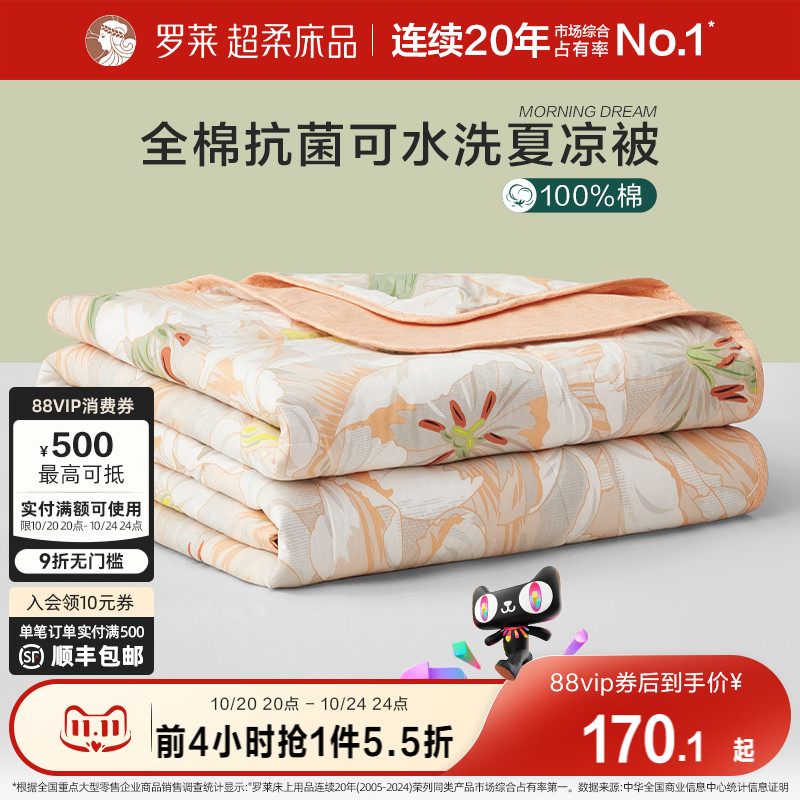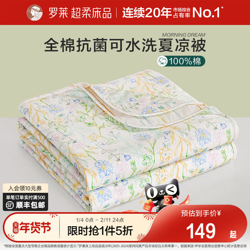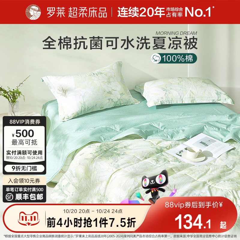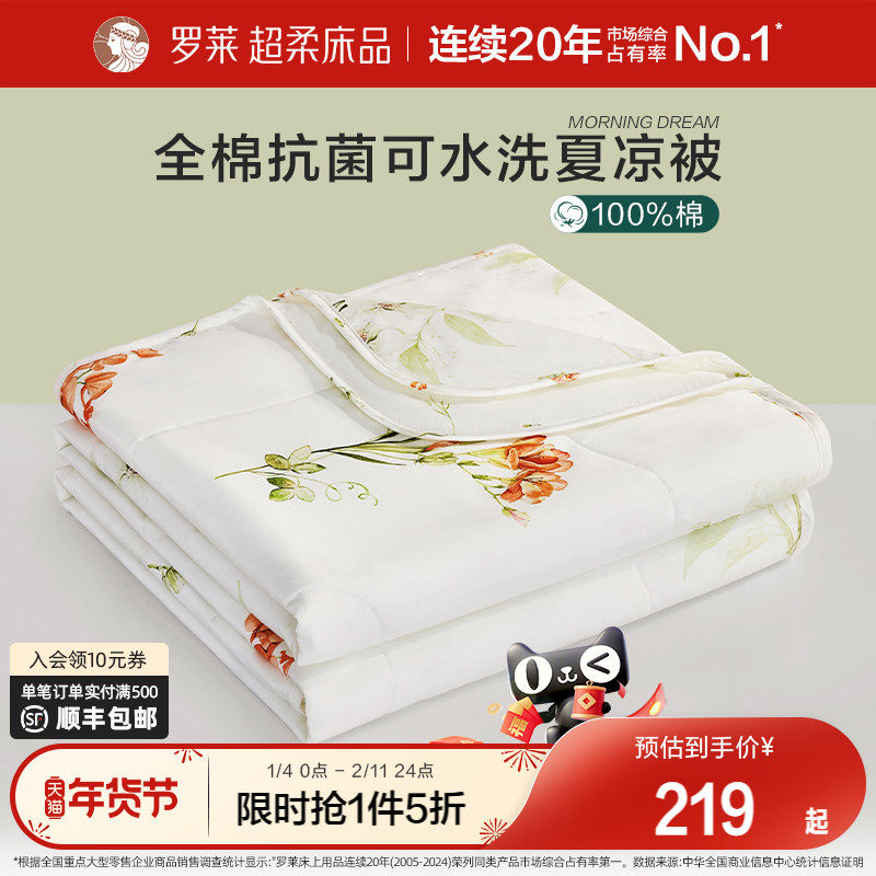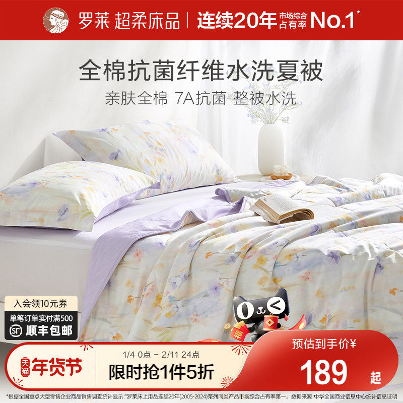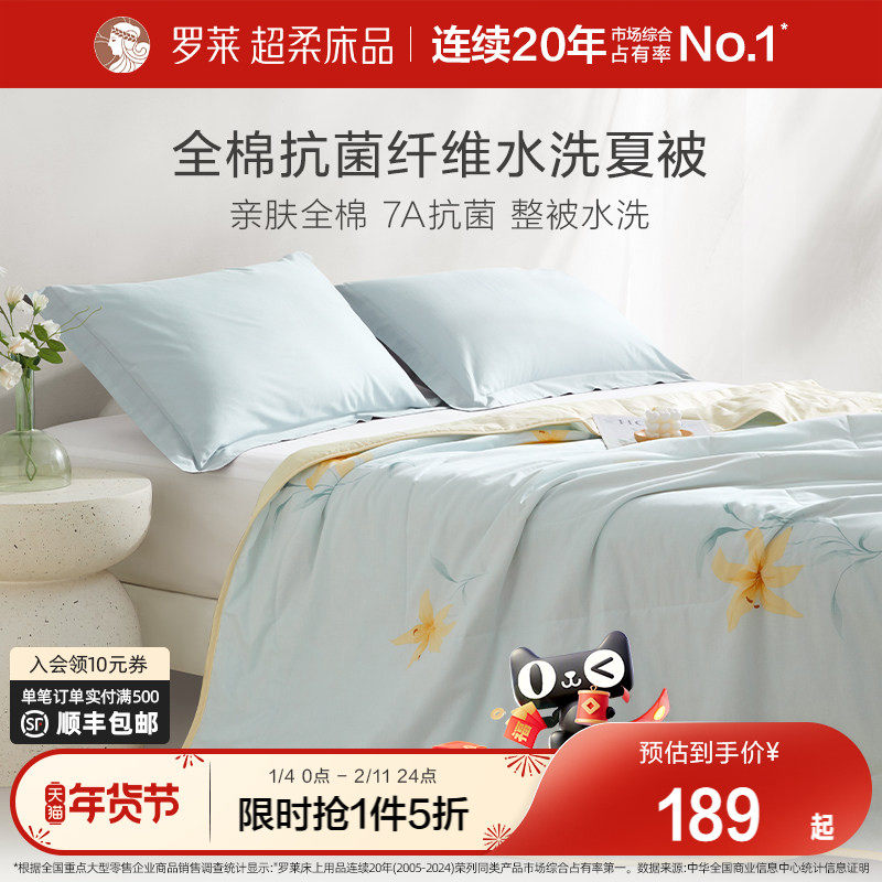罗莱夏季被子被芯空调被学生宿舍全棉面料7A抗菌纤维可水洗夏被