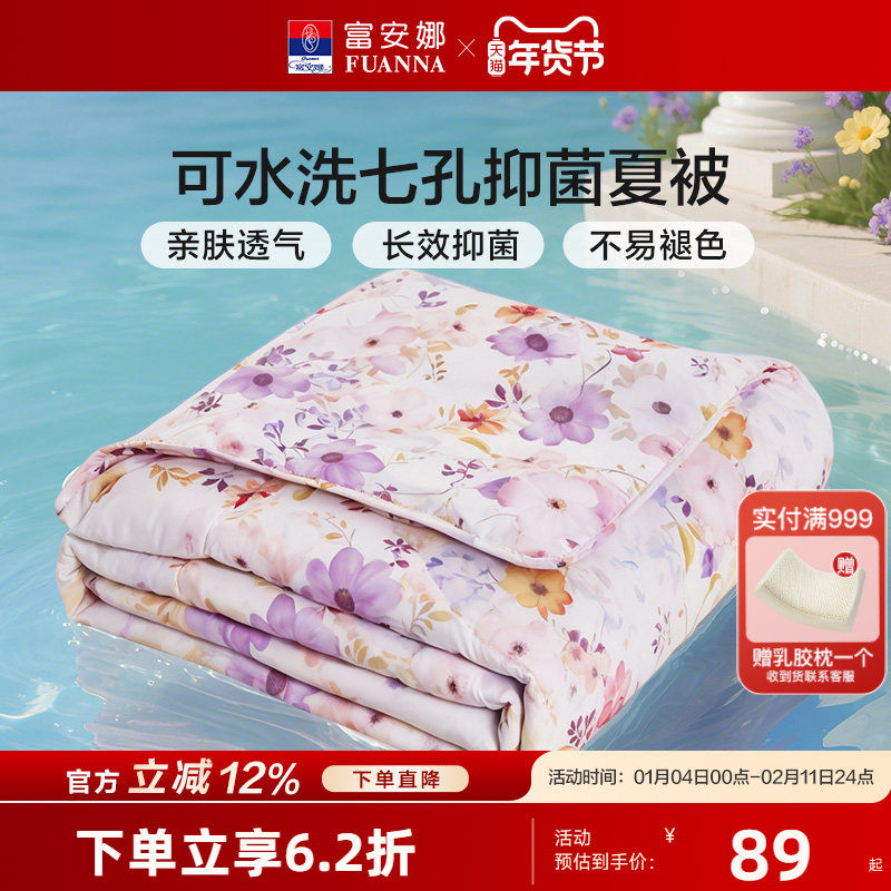 富安娜被子被芯空调被夏季抗菌薄款夏被可水洗机洗双人宿舍夏凉被