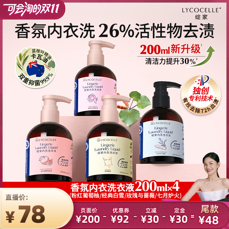 【抢现货!k姐双11】绽家香氛内衣洗衣液抑菌去血渍黄渍200ml*4