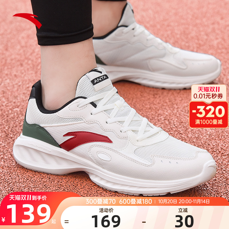 安踏男鞋跑步鞋男款夏季2025新款网面透气软底学生中考白色运动鞋