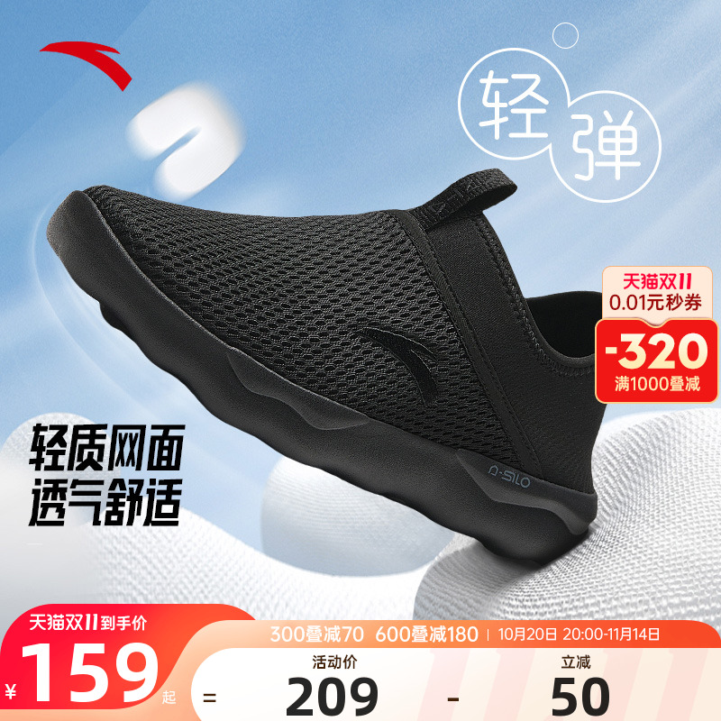 安踏野行丨网面透气一脚蹬黑色男鞋2025夏季新款休闲鞋112528865