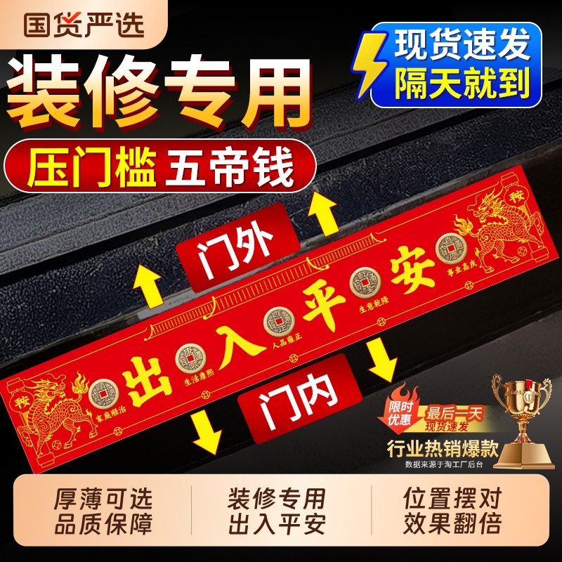 五帝钱压门槛装修门口过门石下压出入平安硬币铺入户门门槛石铜钱