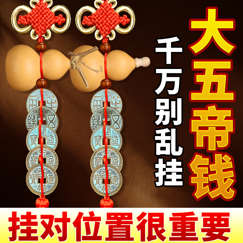 五帝钱葫芦挂件门对门真品铜钱纯铜古币镇宅入户门卧室吉祥中国结