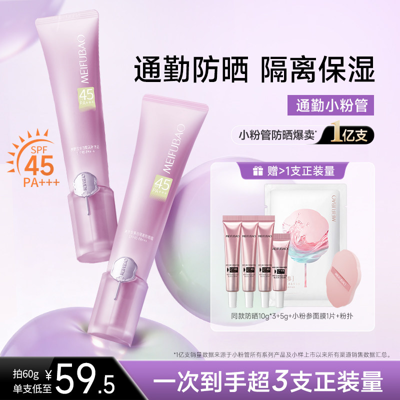 【百亿补贴】美肤宝美白淡斑防晒小粉管50倍20g 防晒霜隔离遮瑕