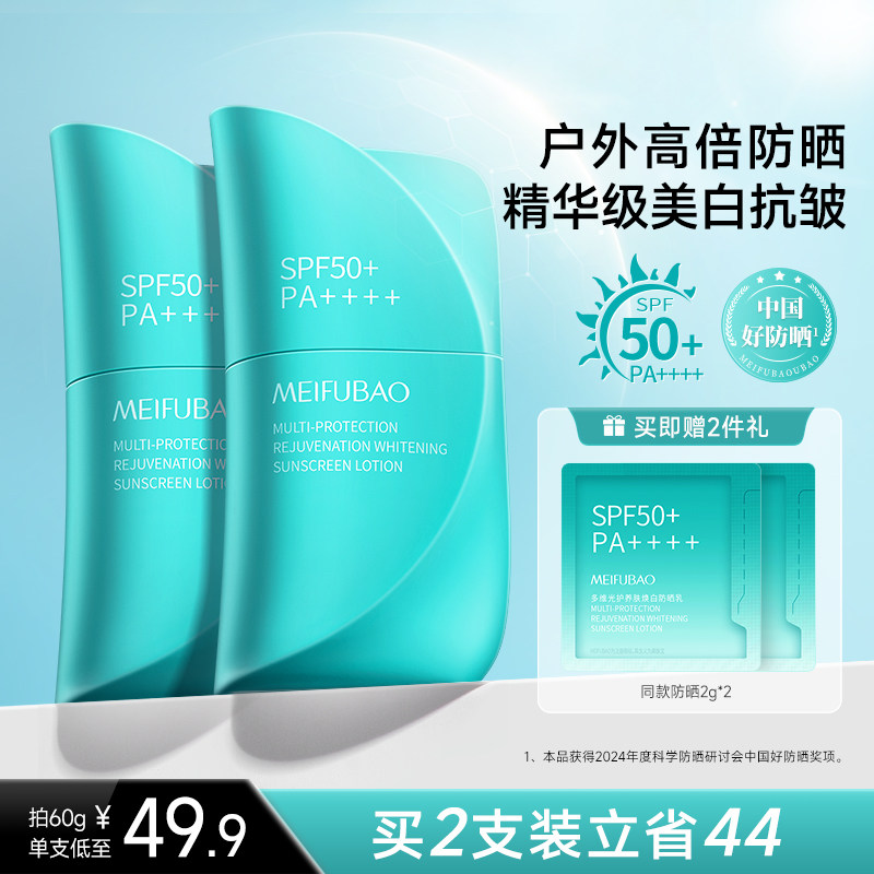 【美白淡斑】美肤宝防晒乳霜50倍防紫外线女隔离三合一旗舰店正品