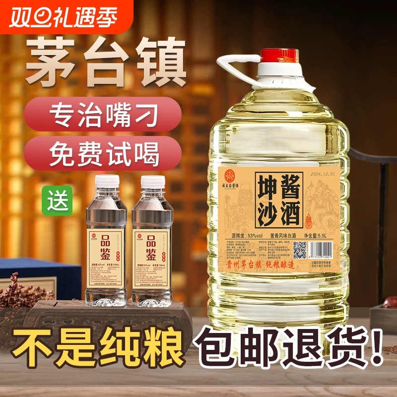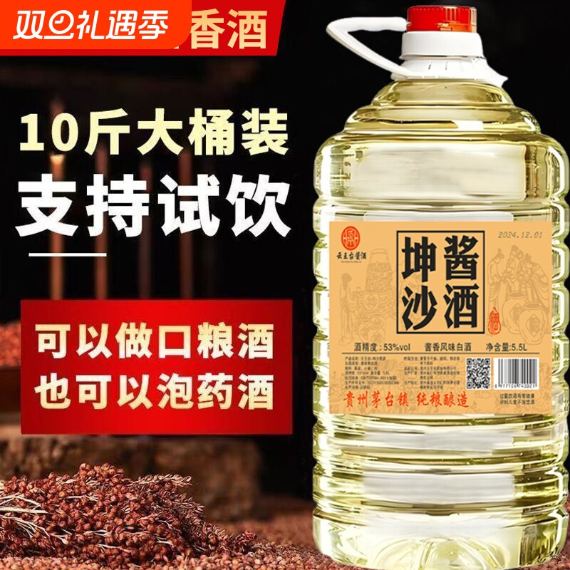 白酒纯粮食酒大曲坤沙酱香型53度散装高粱酒10斤桶装原浆基酒泡酒