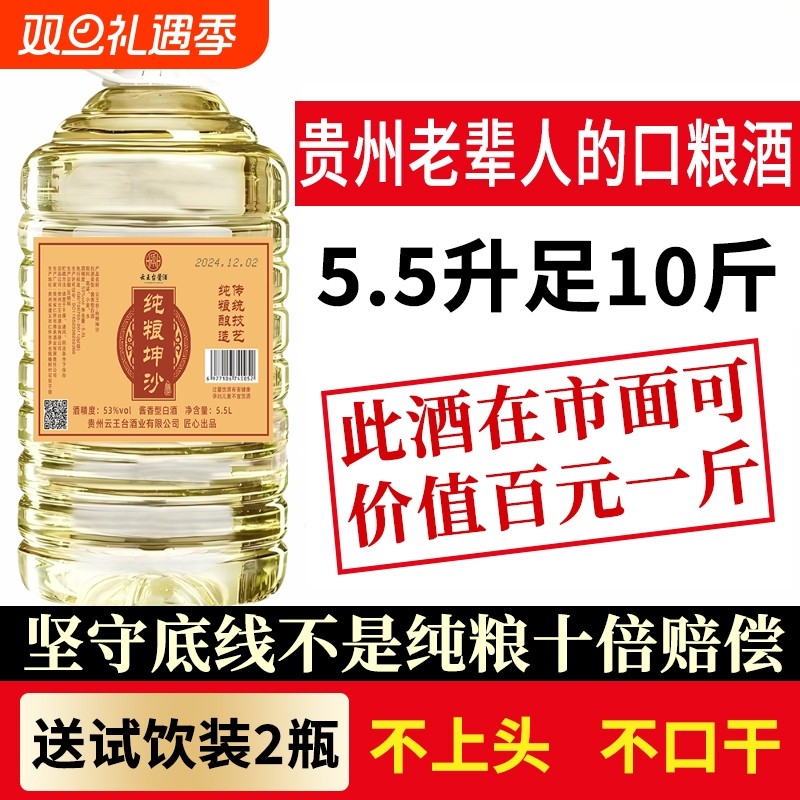 贵州酱香酒白酒53度原浆纯粮食散装酒高度10斤桶装自饮泡药酒专用