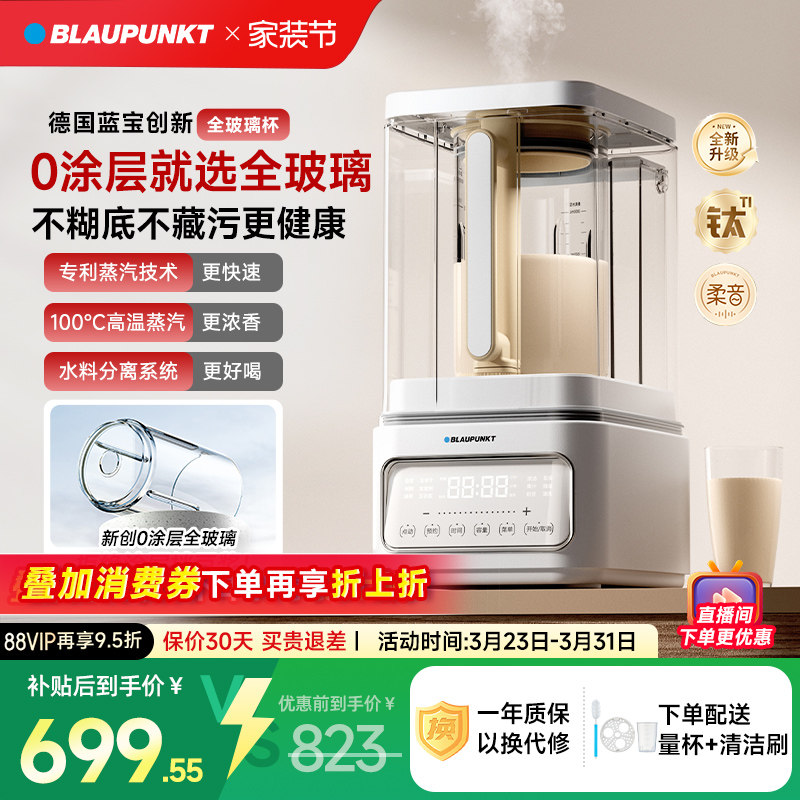 【0涂层】德国蓝宝蒸汽破壁机家用新款静低音无渣全自动豆浆料理