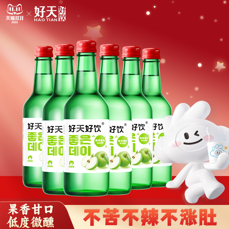 好天好饮气泡酒果味酒甜酒韩国进口烧酒配制酒青苹果味360ml*6瓶