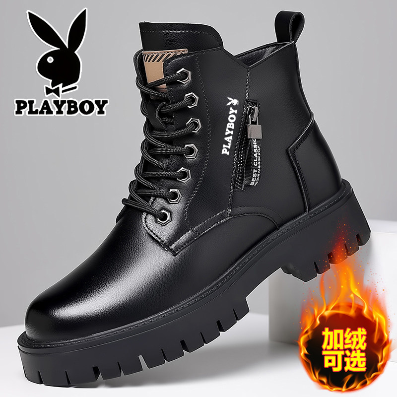 花花公子马丁靴男款冬季英伦加绒羊毛真皮棉皮鞋高帮雪地工装男鞋