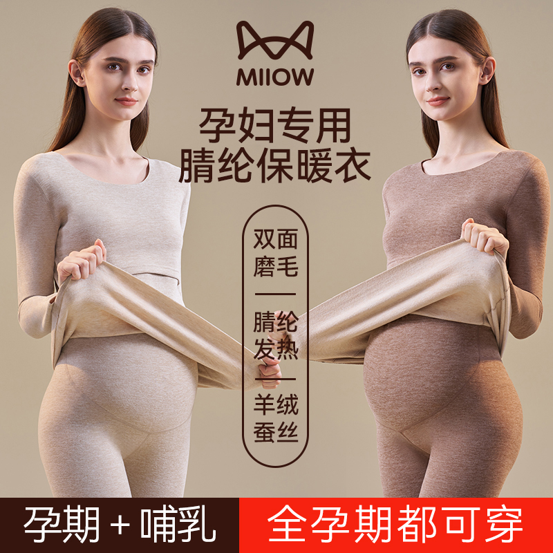 婧麒孕妇保暖内衣上衣秋衣秋裤套装加绒秋冬打底衣产后哺乳睡衣女