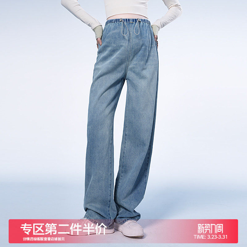 孕妇裤子春季外穿2026新款春夏抽绳小个子直筒牛仔裤不勒肚子长裤