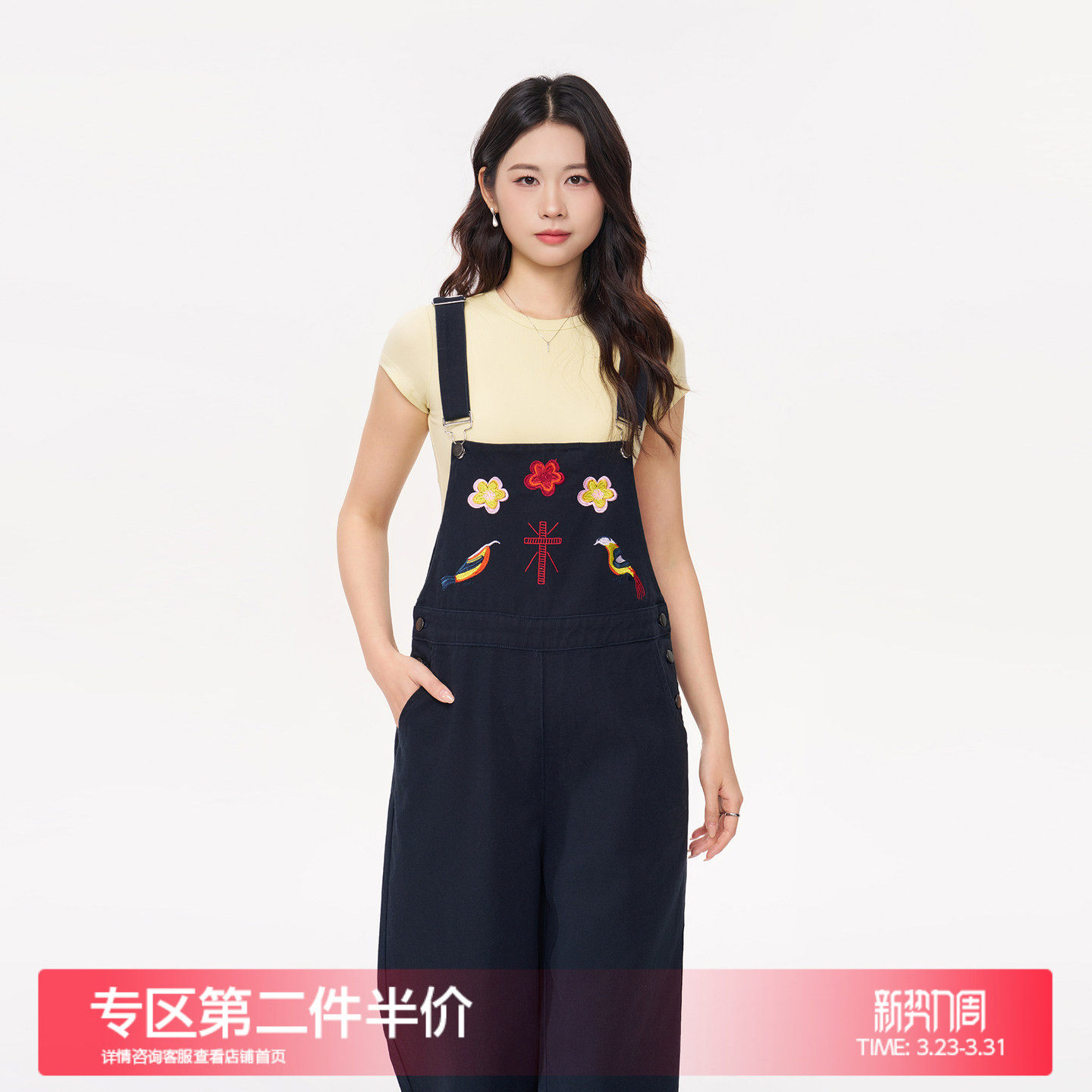 孕之优品孕妇牛仔背带裤春秋2026新款腊肠狗刺绣孕妇裤孕妇装穿搭