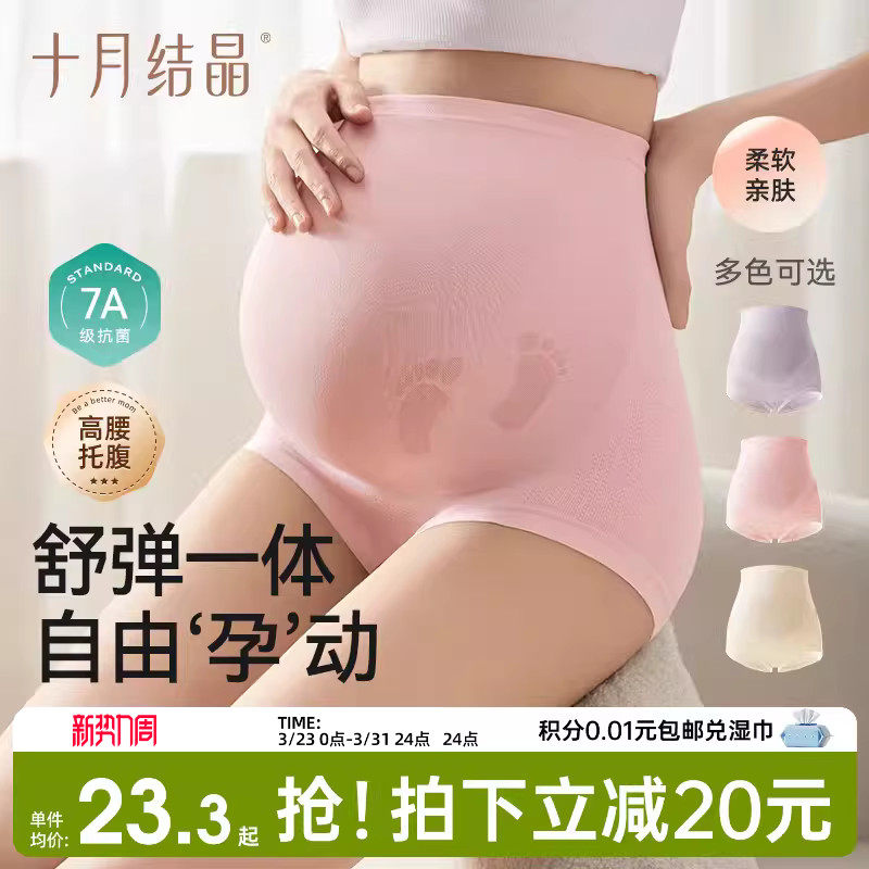 十月结晶孕妇内裤纯棉女孕期中晚期产后透气高腰托腹内裤抗菌大码