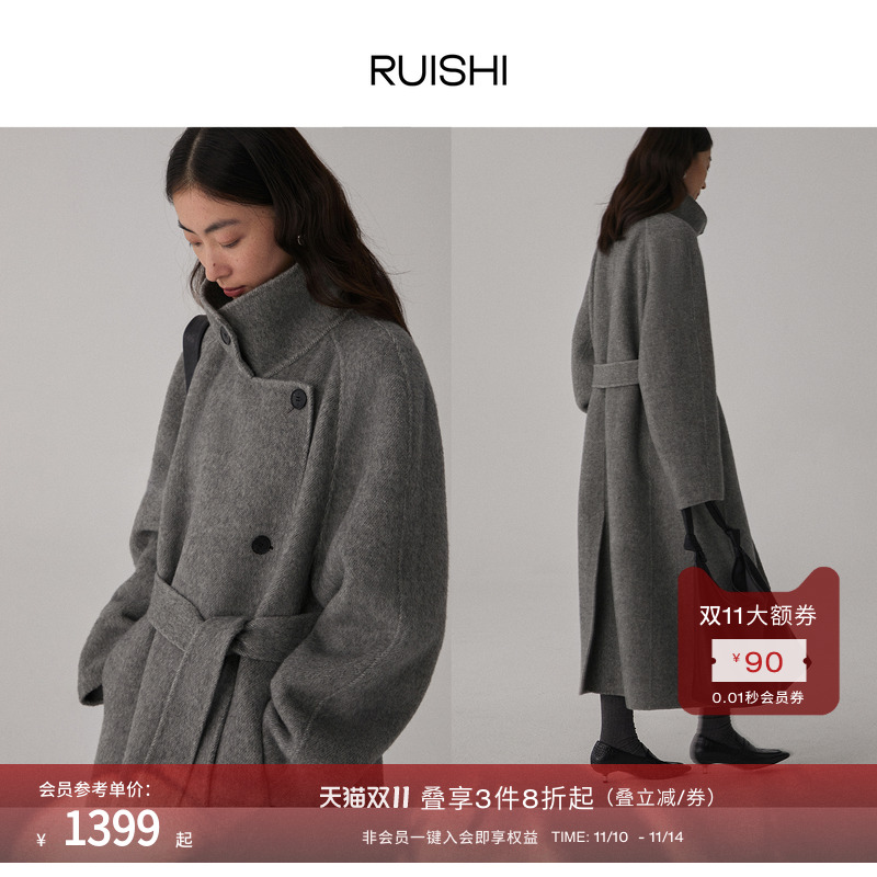 RUISHI芮时 重磅驼绒桑蚕丝羊毛慵懒两穿领毛呢大衣女秋冬外套女