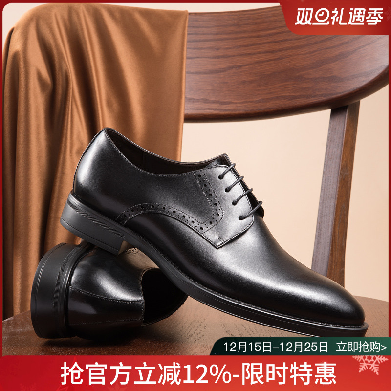 百丽男鞋商务正装鞋加绒婚鞋男士真皮鞋内增高通勤德比鞋A1095AM3
