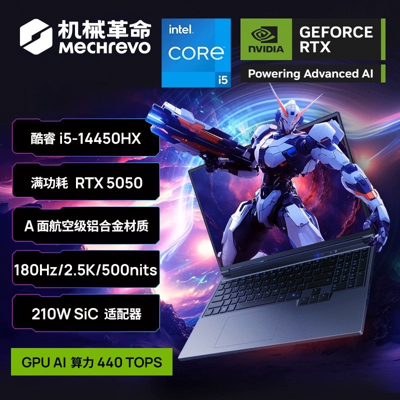 【国家补贴20%】机械革命极光X 酷睿i5HX 学生游戏本笔记本电脑 i5-14450HX 16G 512gb RTX5050 2.5K屏180Hz