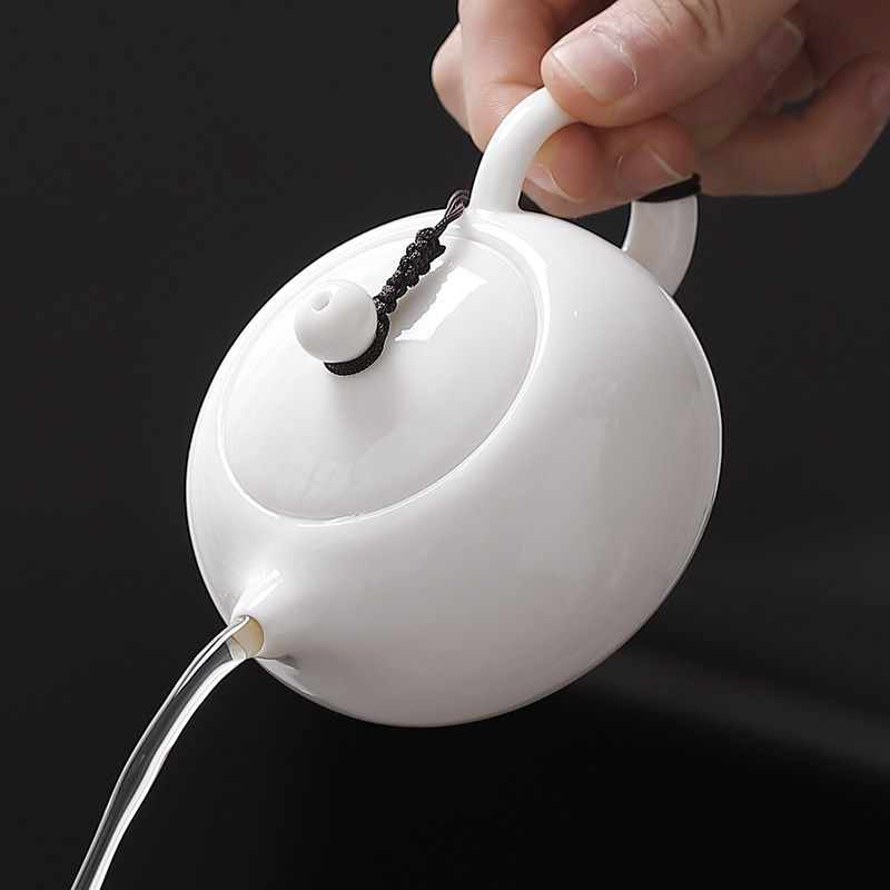 景德镇羊脂玉瓷茶壶 一人饮泡茶壶家用陶瓷一壶一杯功夫茶具防烫