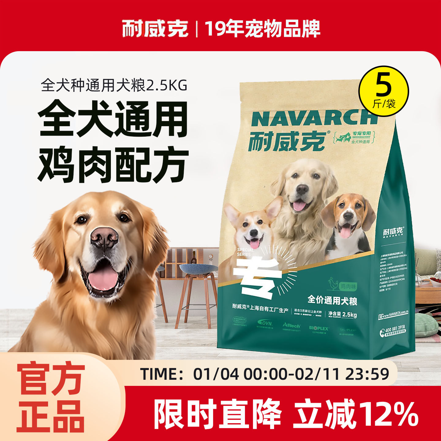 耐威克狗粮全犬种成犬粮2.5kg泰迪金毛比熊大型犬小型犬通用型5斤