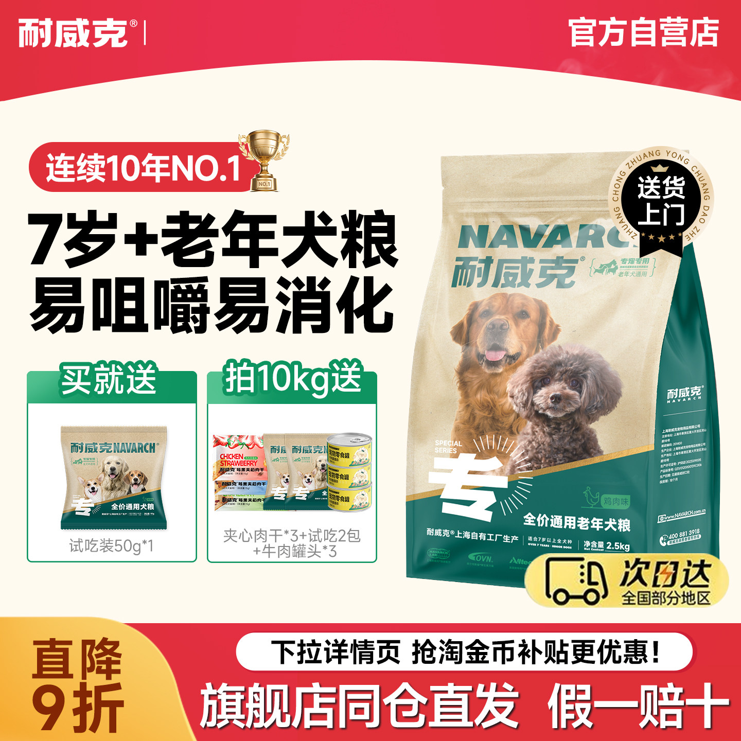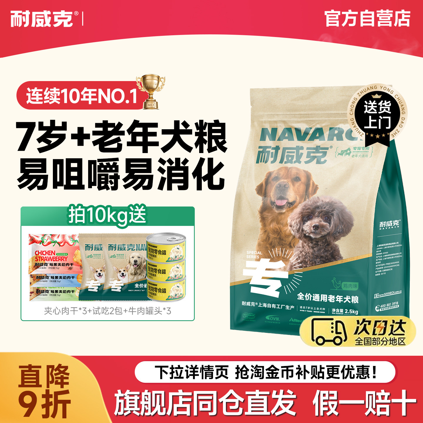 耐威克狗粮老年犬专用粮10斤通用型泰迪比熊金毛粮小中大型犬试吃