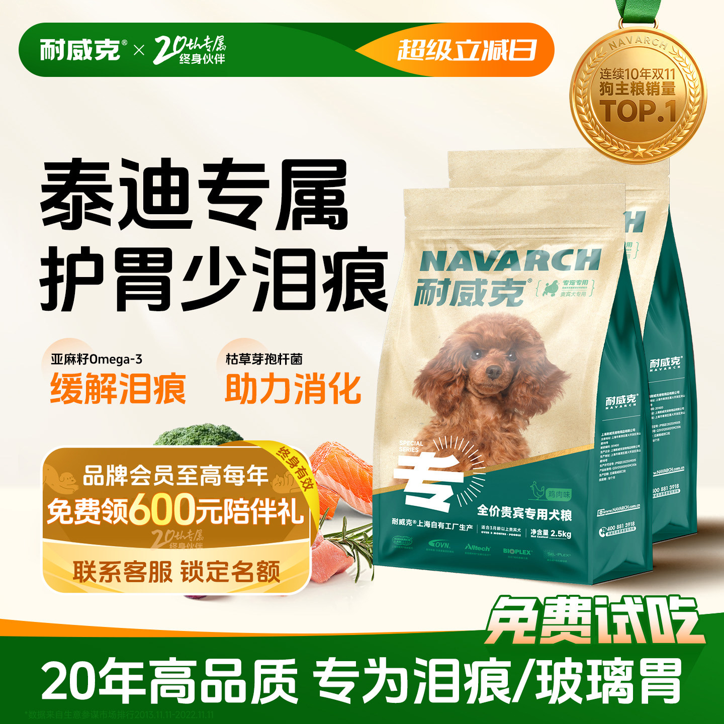 耐威克狗粮2.5kg泰迪贵宾专用成犬粮美毛去泪痕小型犬通用型5斤