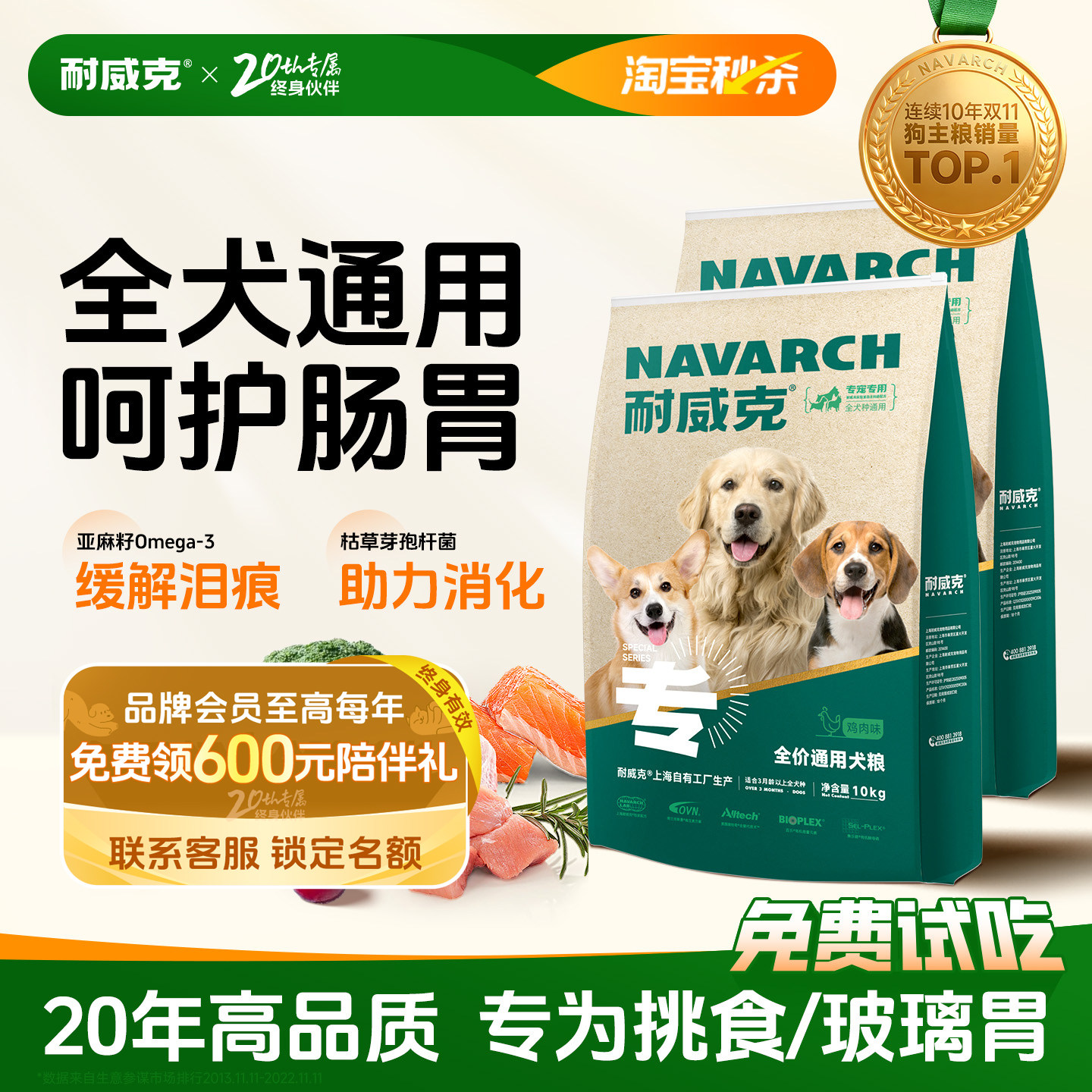 【100万+回购】耐威克狗粮通用型金毛泰迪成幼犬粮老年小型犬40斤