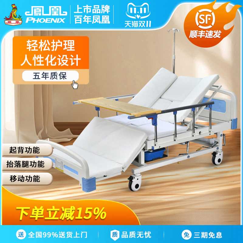 凤凰手动护理床可翻身床瘫痪病人坐起抬腿医用床老人多功能医疗床