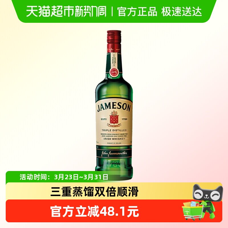【进口】Jameson尊美醇爱尔兰威士忌洋酒烈酒700ml×1瓶特调