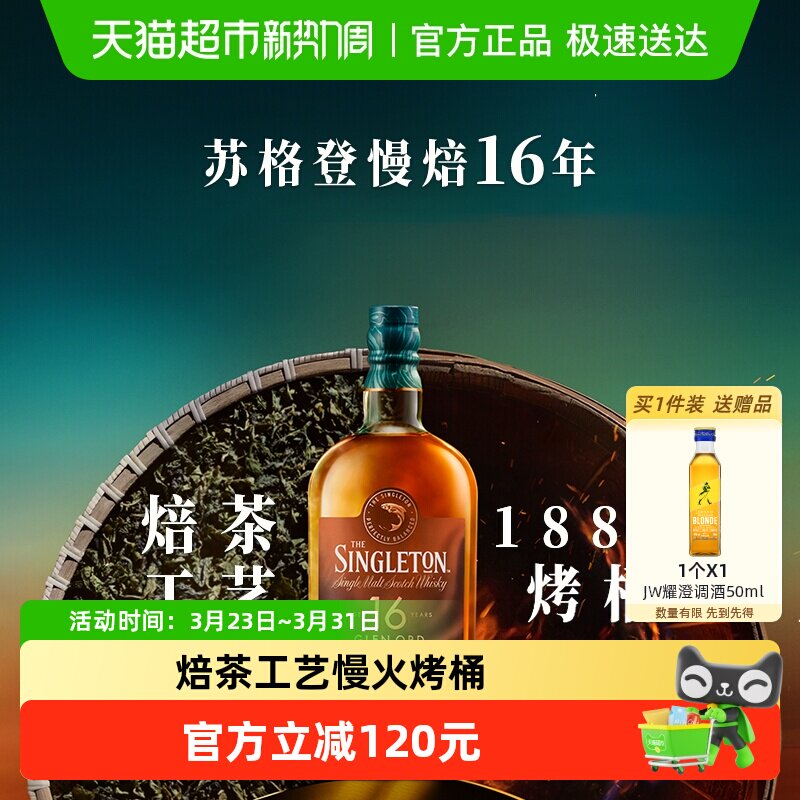 【进口】苏格登醇金13年单一麦芽苏格兰威士忌酒700ml洋酒甜白桶