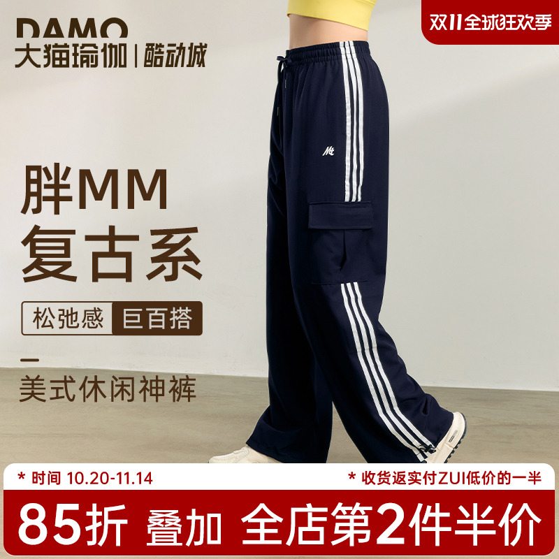 2025秋季新款宽松显瘦运动阔腿裤女大码胖mm慵懒风酷飒休闲长裤子