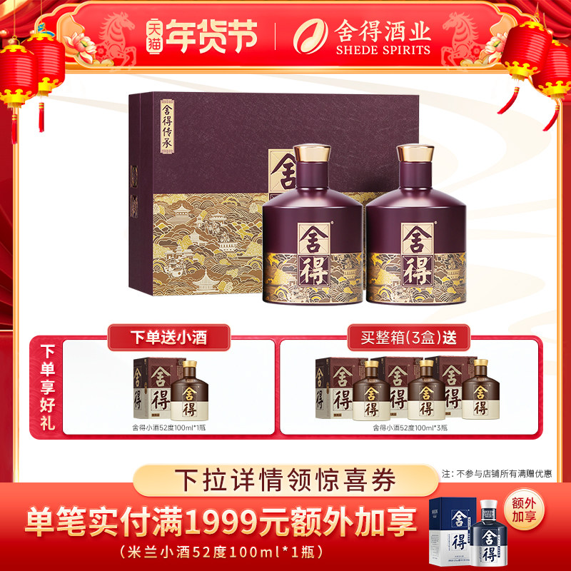 舍得酒品味舍得传承版52度538ml*2瓶礼盒装浓香型年货节送礼白酒