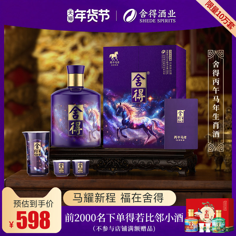 【顺丰】舍得马年生肖酒54度518ml浓香型礼盒装白酒年货送礼收藏