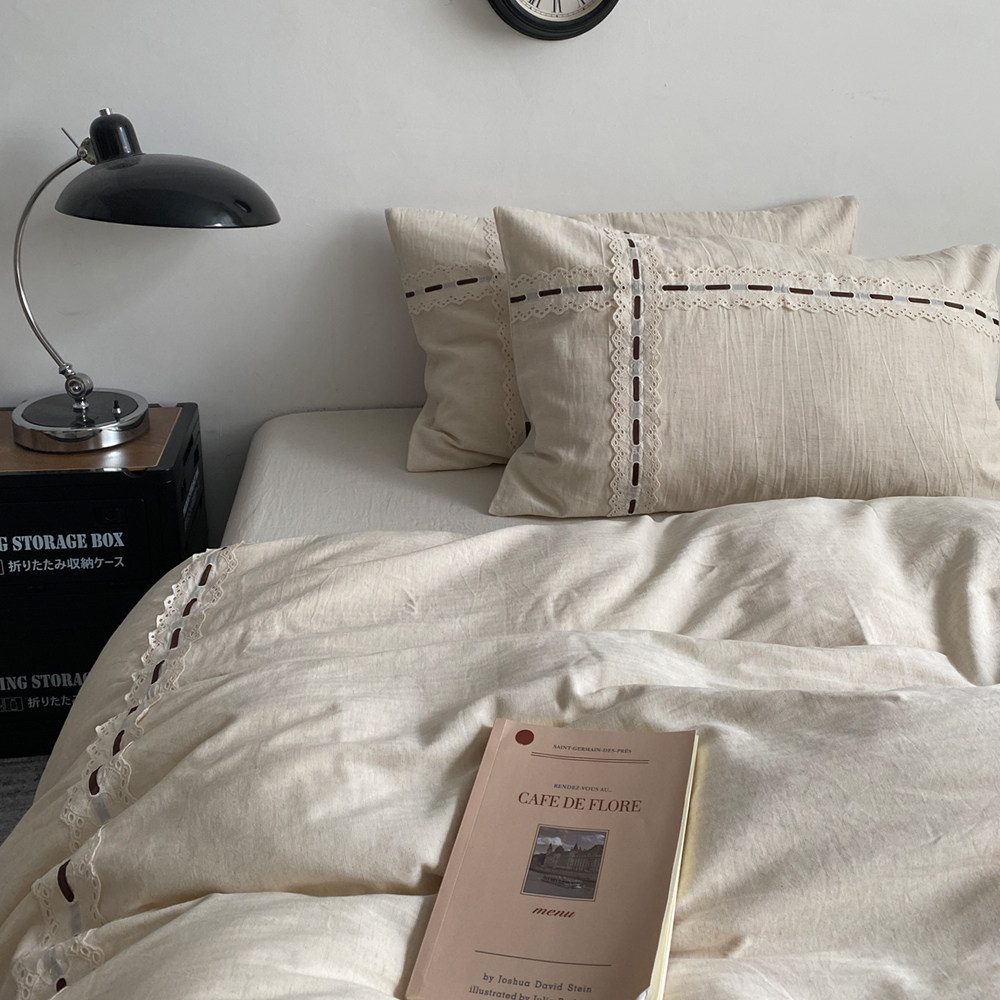 无印良品床上用品四件套全棉纯棉100三套件床单被套床笠被罩家用