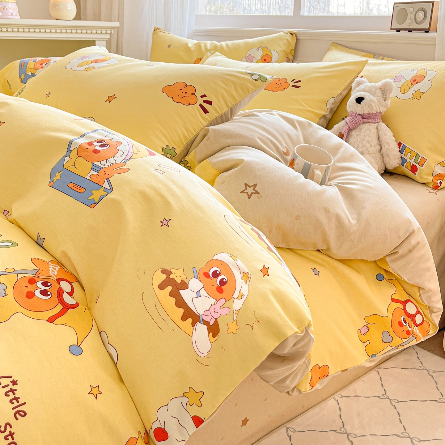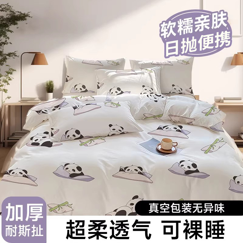 全棉纯棉印花四件套格子卡通被套床单亲肤软糯床上用品四季小清新