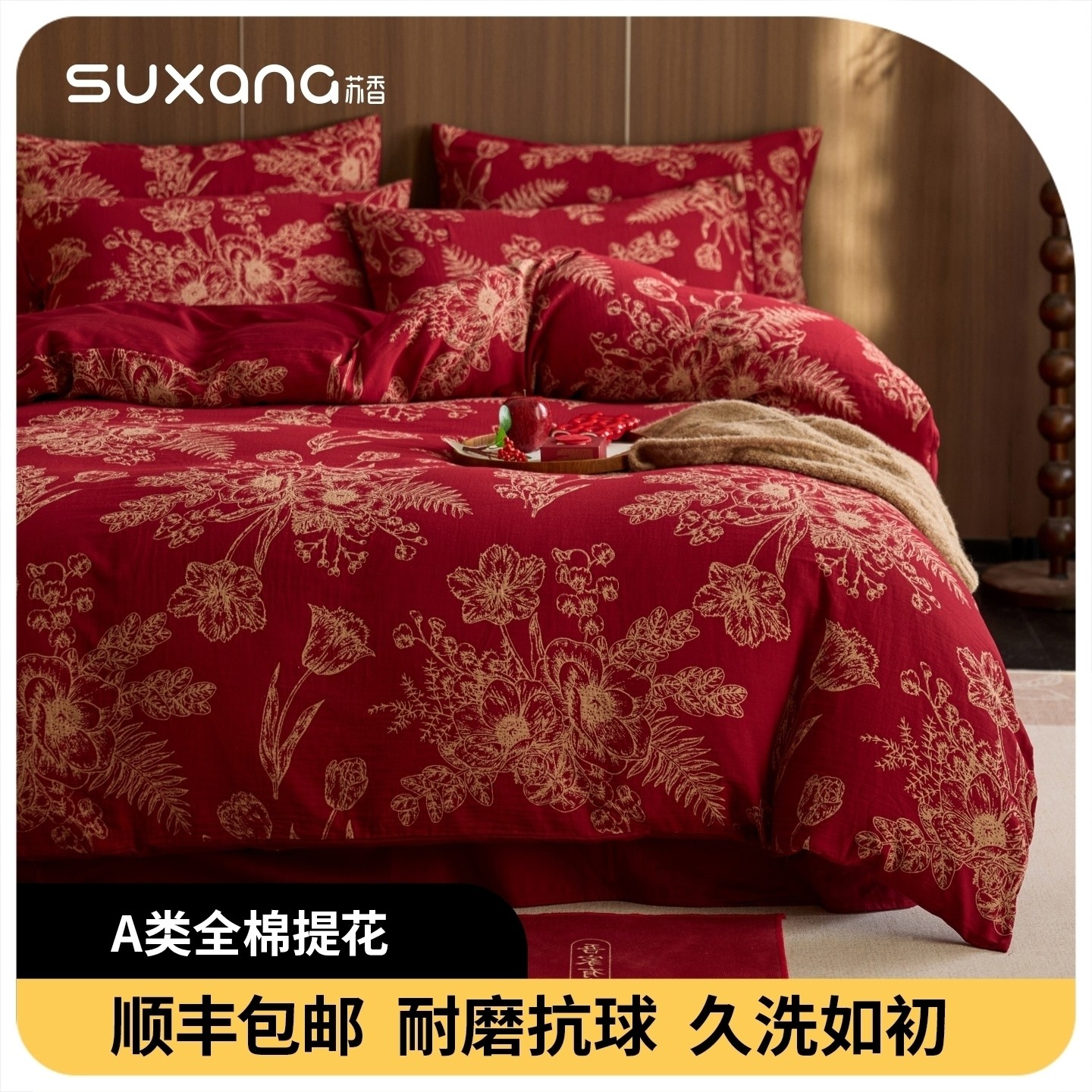 高质量红色结婚床上用品四件套婚庆喜被全棉纯棉2025新款高端婚嫁