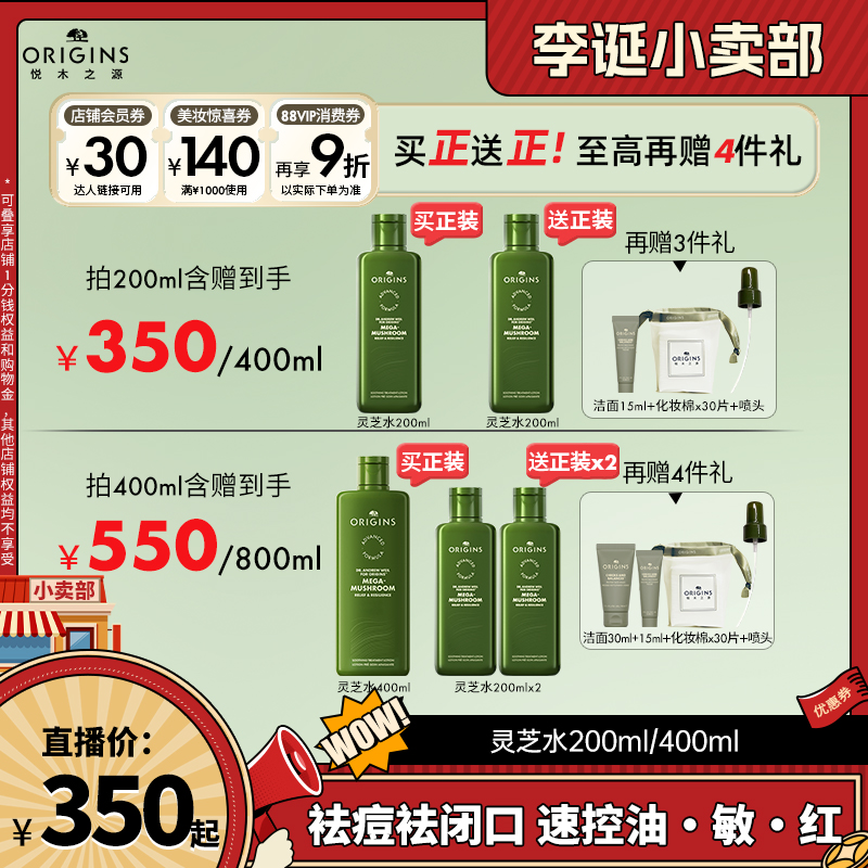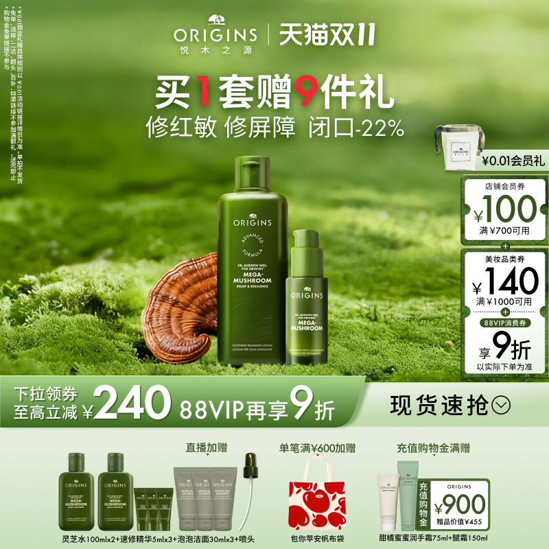 【包邮】Origins悦木之源菌菇水蘑菇水灵芝精华爽肤水200ml