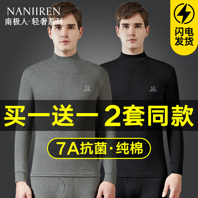 南极人秋衣秋裤男士纯棉半高领2025新款冬季全棉毛衫保暖内衣套装