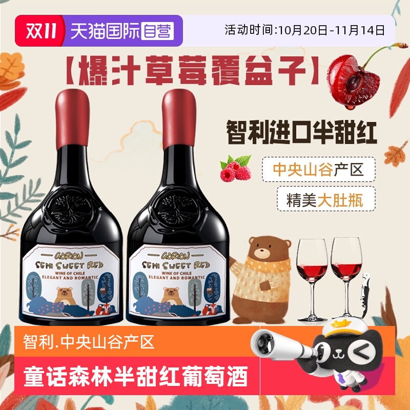 【自营】智利进口童话森林半甜红葡萄酒红酒礼盒装晚安酒送礼正品