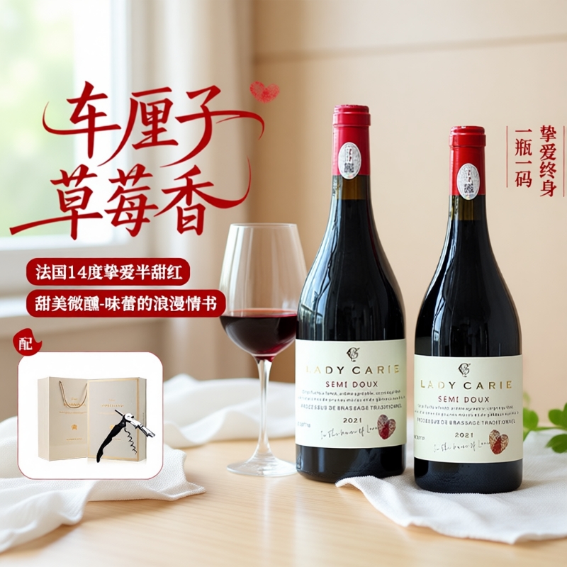 法国进口半甜红葡萄酒结婚礼物甜型红酒礼盒微醺晚收甜红女士13度