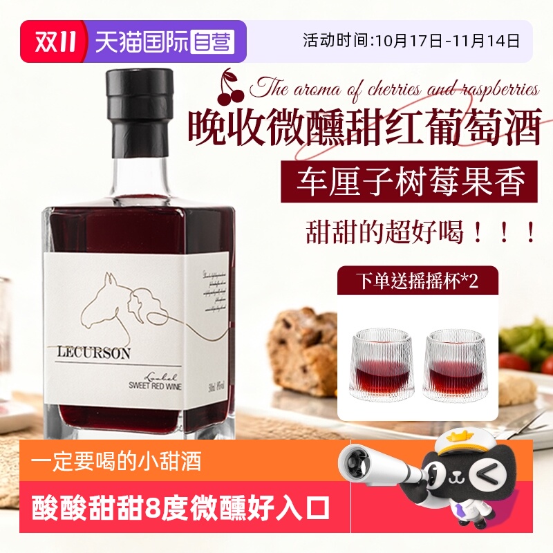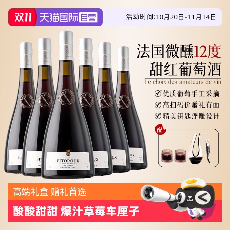 法国原酒进口菲特瓦晚收甜红葡萄酒女士8%度低度数微醺晚安小甜酒