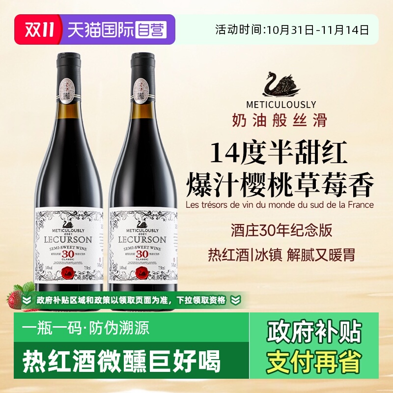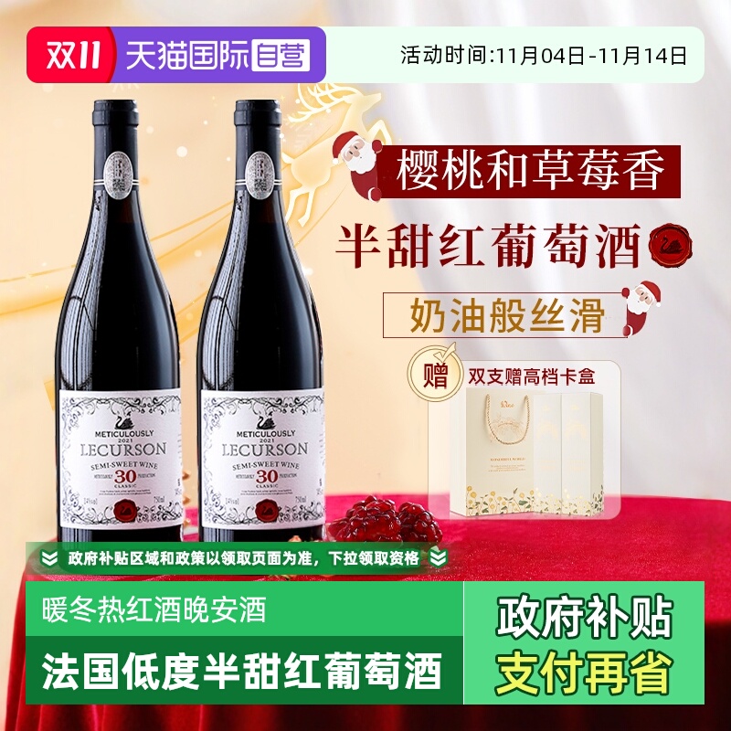 法国进口热红酒正品半甜红葡萄酒14度甜型女士微醺干红晚安小甜酒