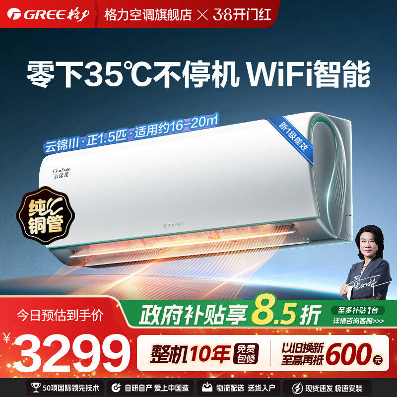 格力空调云锦三代官方旗舰正品一级能效变频冷暖正1.5匹大1匹挂机