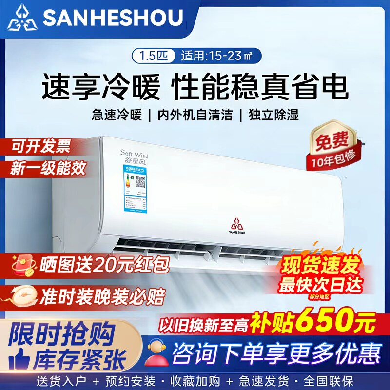 三凌补贴空调大1/1.5匹冷暖家用壁挂式机新一级能效以旧换新变频