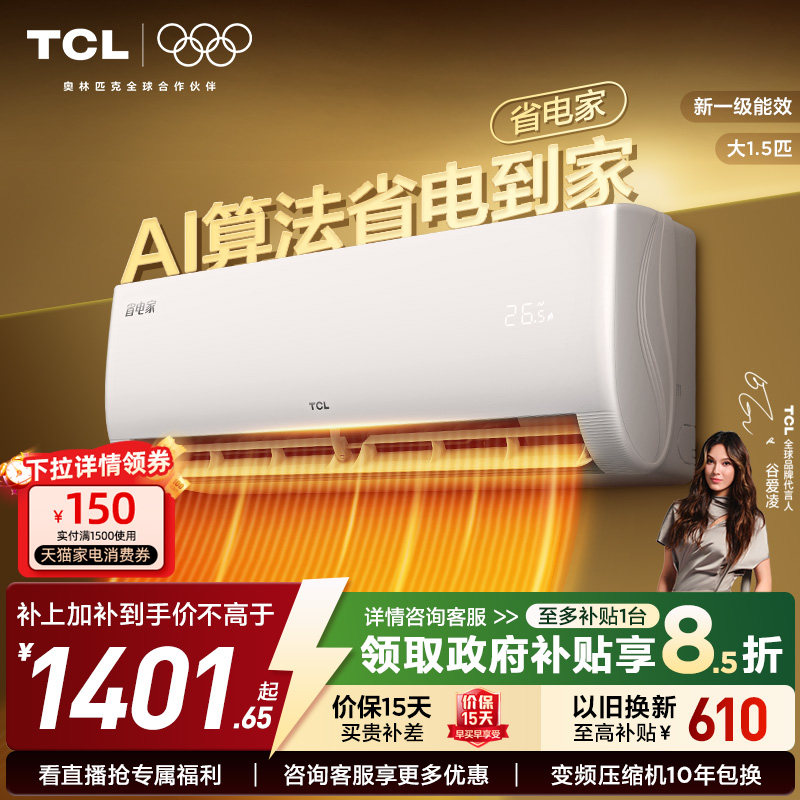 【新品】TCL空调省电家大1.5匹1匹挂机变频冷暖新一级壁挂式